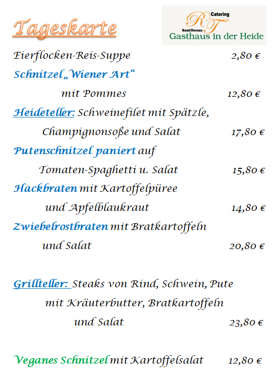 Seit dem 31.12.2018 führt RT Catering den Partyservice Heindl-Partyservice aus Saal a.d. Donau für Sie weiter.